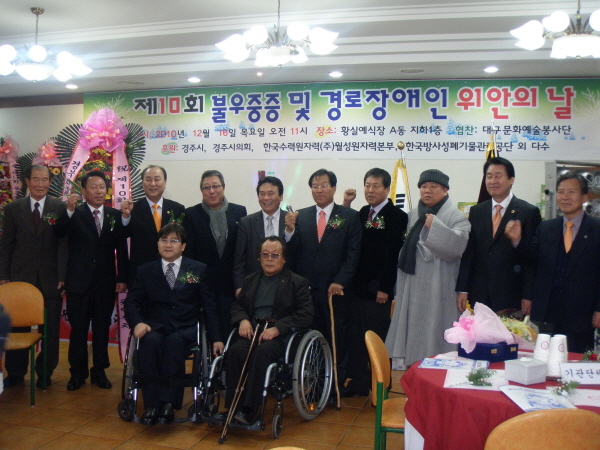 Á¦ 10ȸ ºÒ¿ìÁßÁõ ¹× °æ·ÎÀå¾ÖÀÎ À§¾ÈÀÇ ³¯ Çà»ç°¡ Ȳ½Ç¿¹½ÄÀå¿¡¼ »ç)½ÅüÀå¾ÖÀÎ º¹Áöȸ ÁÖ°üÀ¸·Î ¿·ÈÀ¸¸ç Ãѹ«¿øÀå Å«½º´Ô²²¼ Âü¿©Çϼ̽À´Ï´Ù.