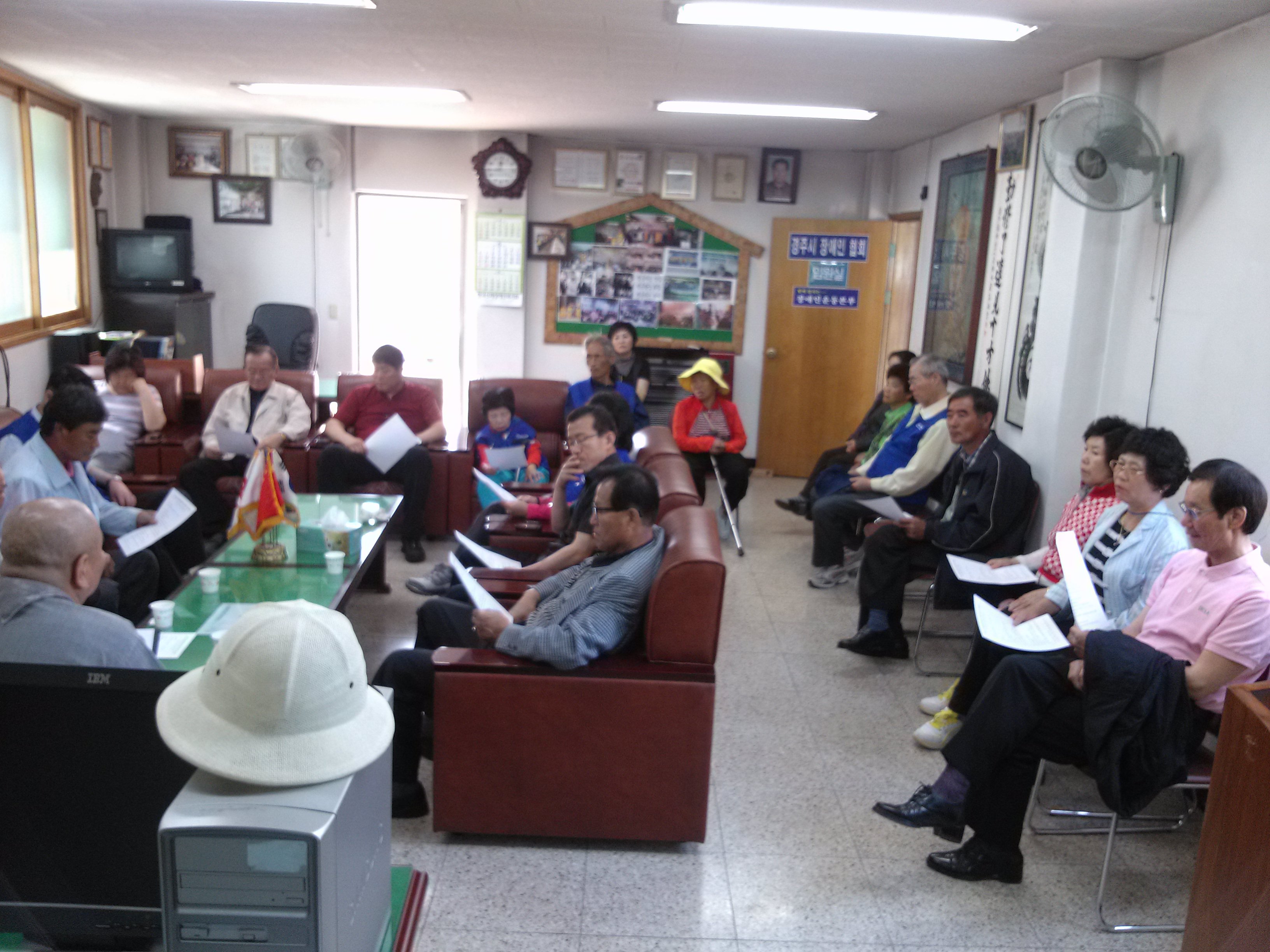 10½Ã 20ºÐ°æ¿¡ °æÁÖ±¹¸³¹Ú¹°°ü¿¡ Áý°áÇÏ¿© 30ºÐ°¡·® ȯ°æ¿îµ¿ºÀ»ç¸¦ ÇÑ ÈÄ »ç¹«½Ç·Î µ¹¾Æ¿Í ÀÌ»çȸÀǸ¦ ÇÏ¿´½À´Ï´Ù.